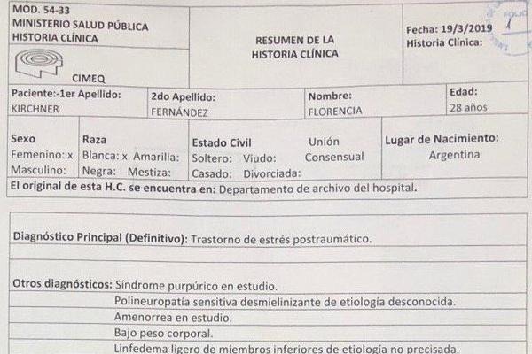 Tiene pocas páginas, la firma de dos médicos, y carece de información nueva sobre el estado de salud. Eso sí, ostenta la reiteración que se encuentra impedida de viajar.